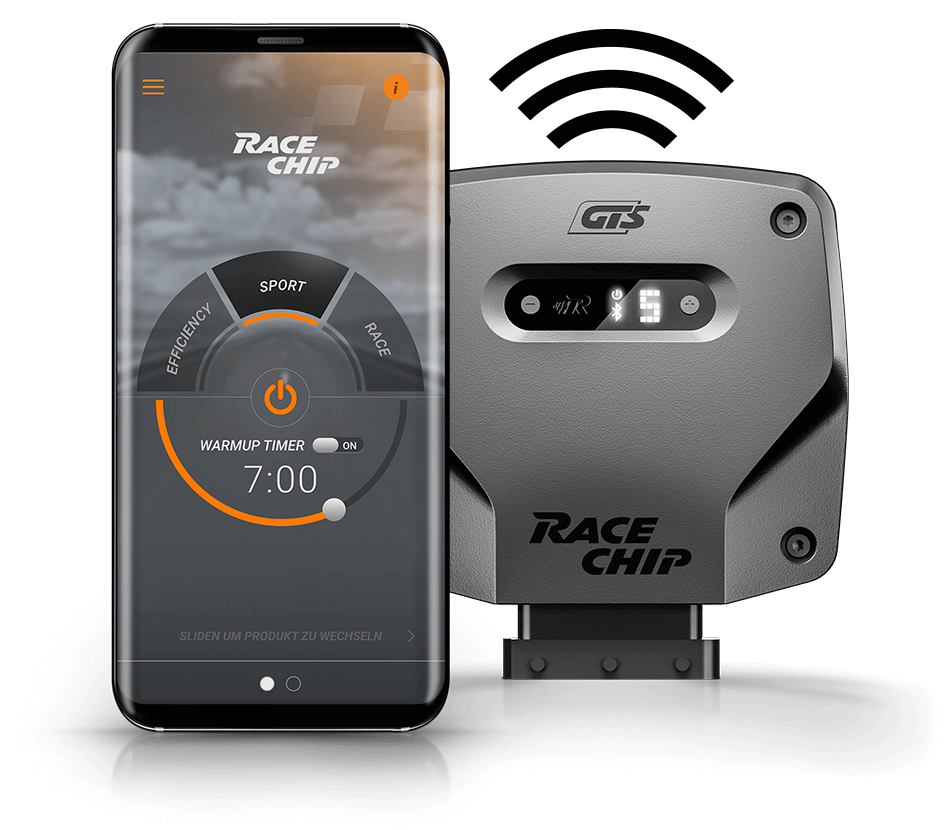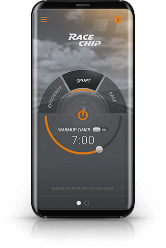 As innovation leader in the field of chip tuning, RaceChip has developed a Smartphone app that enables you to communicate via Bluetooth with your performance chip. You can switch between three performance levels, which are specifically customised for your engine: Efficiency, Sport and Race. The integrated warm-up timer allows you to set a warm-up phase for your engine before releasing the performance upgrade. This protects the engine even in the coldest winter nights.